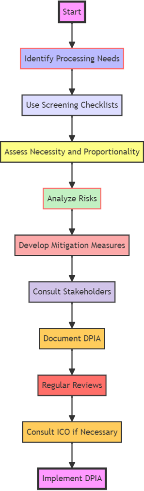 - Regulatory Consultation: If high risks remain unmitigated, consulting the Information Commissioner's Office (ICO) before processing begins is necessary.